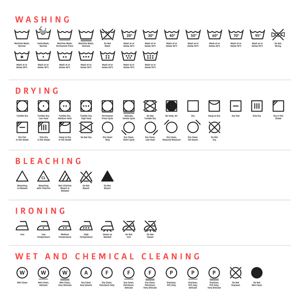 Kıyafet etiketleri, üretici tarafından giysinin hangi koşullarda temizlenmesi gerektiğini gösteren evrensel işaretler içerir. Bu semboller, kumaşın yapısına göre belirlenir ve yanlış uygulamalar sonucu oluşabilecek hasarların önüne geçmeyi amaçlar.